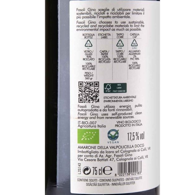 Plongez dans l'univers fascinant de l'Amarone della Valpolicella DOCG Fasoli Gino La Corte del Pozzo, un excellent vin rouge issu de la célèbre région viticole italienne de Valpolicella. Reconnu pour ses méthodes d'agriculture biologique et son engagement envers la plus haute qualité, le domaine Fasoli Gino exprime l'essence de son terroir et la tradition du Valpolicella avec cet Amarone.