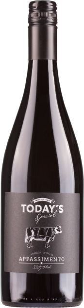 Voor de Today's Special Appassimento uit Apulië worden de druiven na de oogst eerst gedroogd. Dit proces zorgt voor een hogere suikerconcentratie in de cuvée van Negroamaro met een beetje Merlot, Malvasia en Primitivo, wat leidt tot een iets hoger alcoholpercentage tijdens de gisting – wat resulteert in een vrij krachtige rode wijn uit Italië.